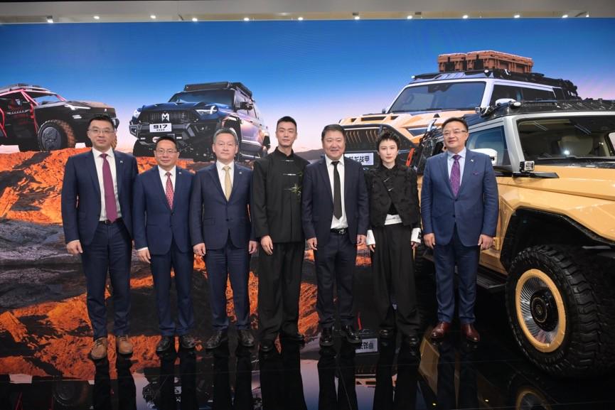 本次车展上,东风猛士科技与博纳影业宣布达成战略合作,并推出首款联名车型—猛士917蛟龙战甲。博纳影业创始人、董事长于冬在猛士展台正式官宣电影《蛟龙行动》,并与东风汽车集团股份有限公司党委常委、副总经理尤峥共同为猛士917蛟龙战甲揭幕。同时,电影主创演员蒋璐霞、高戈亲临现场,共同见证了猛士与博纳携手合作的高光时刻。