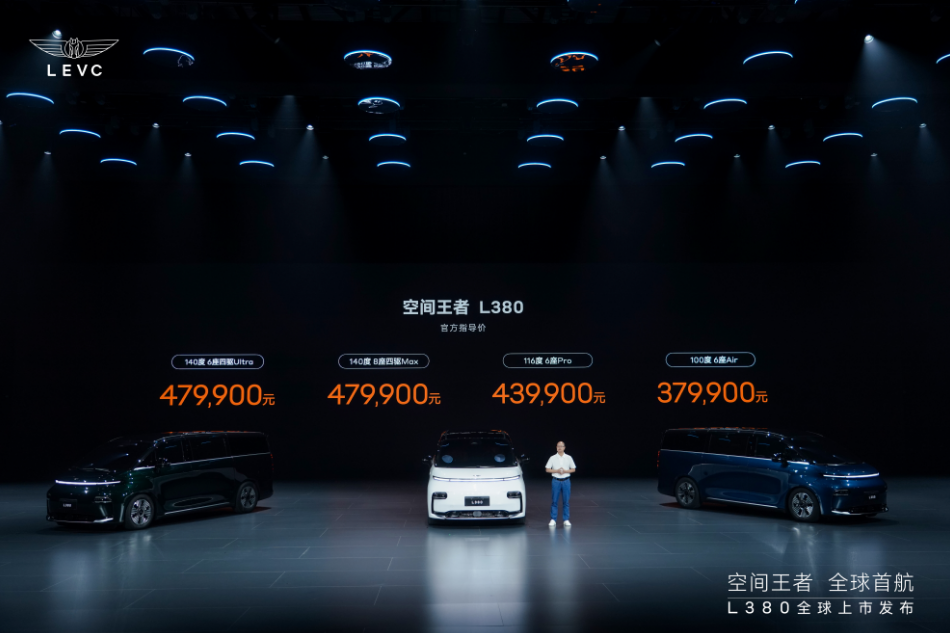 6月25日,吉利汽车旗下LEVC翼真汽车(前身为伦敦电动汽车公司)纯电MPV L380正式上市,4款车型分6座和8座两种,电池最高140度,官方指导价37.99万元-47.99万元。